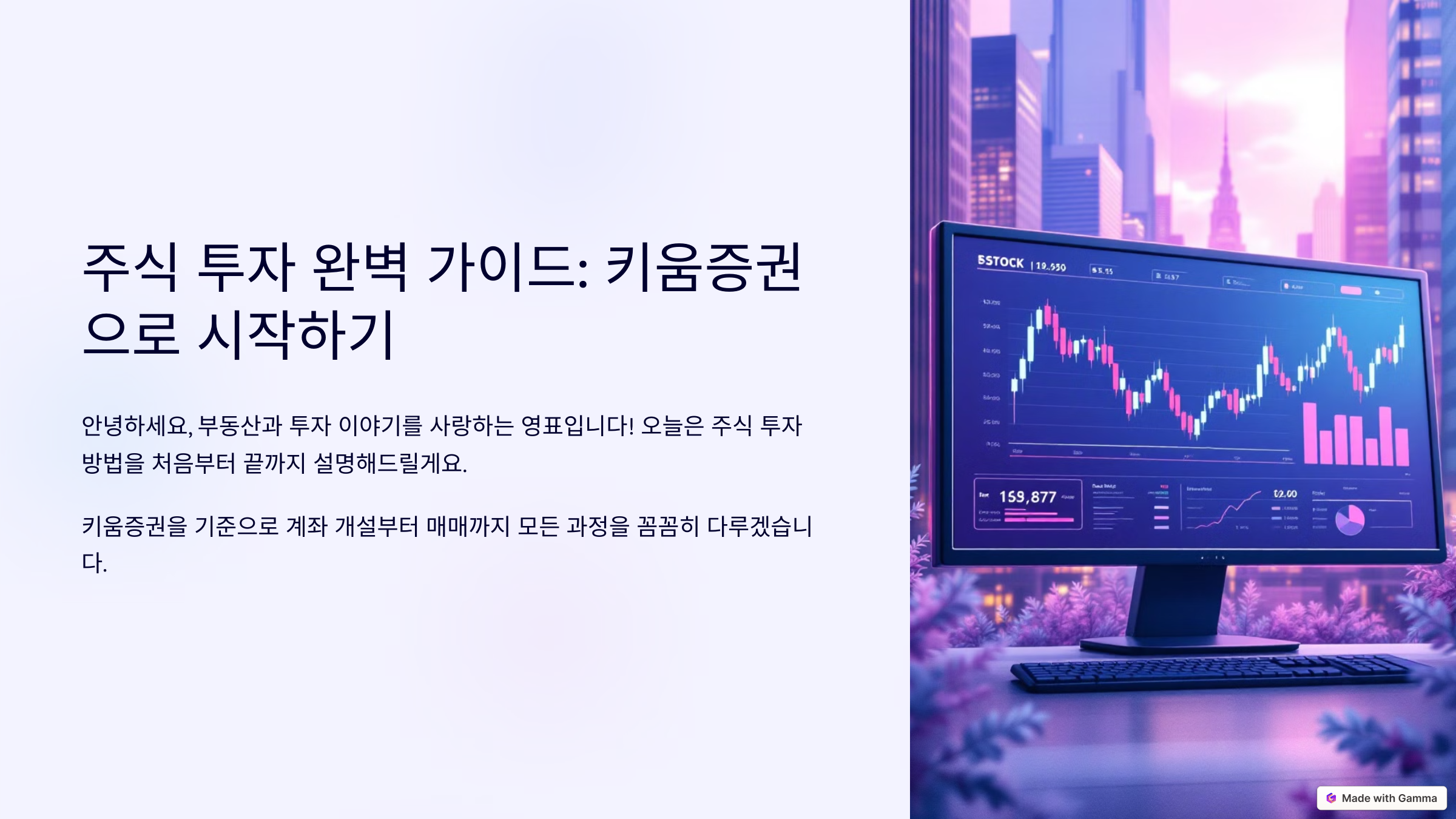 안녕하세요, 부동산과 투자 이야기를 사랑하는 영표입니다! 오늘은 주식 투자 방법에 대해 정말 상세하게, 처음부터 끝까지 절차를 쌓아가며 설명해볼게요. 특히 키움증권을 기준으로, 계좌 개설부터 매매까지 모든 과정을 꼼꼼히 다루고, 다른 증권사와의 차별화 포인트와 수수료도 도표로 정리했습니다. 주식 투자가 처음인 분들도 쉽게 따라 할 수 있게끔 준비했으니, 끝까지 읽고 여러분의 투자 여정도 시작해보세요!