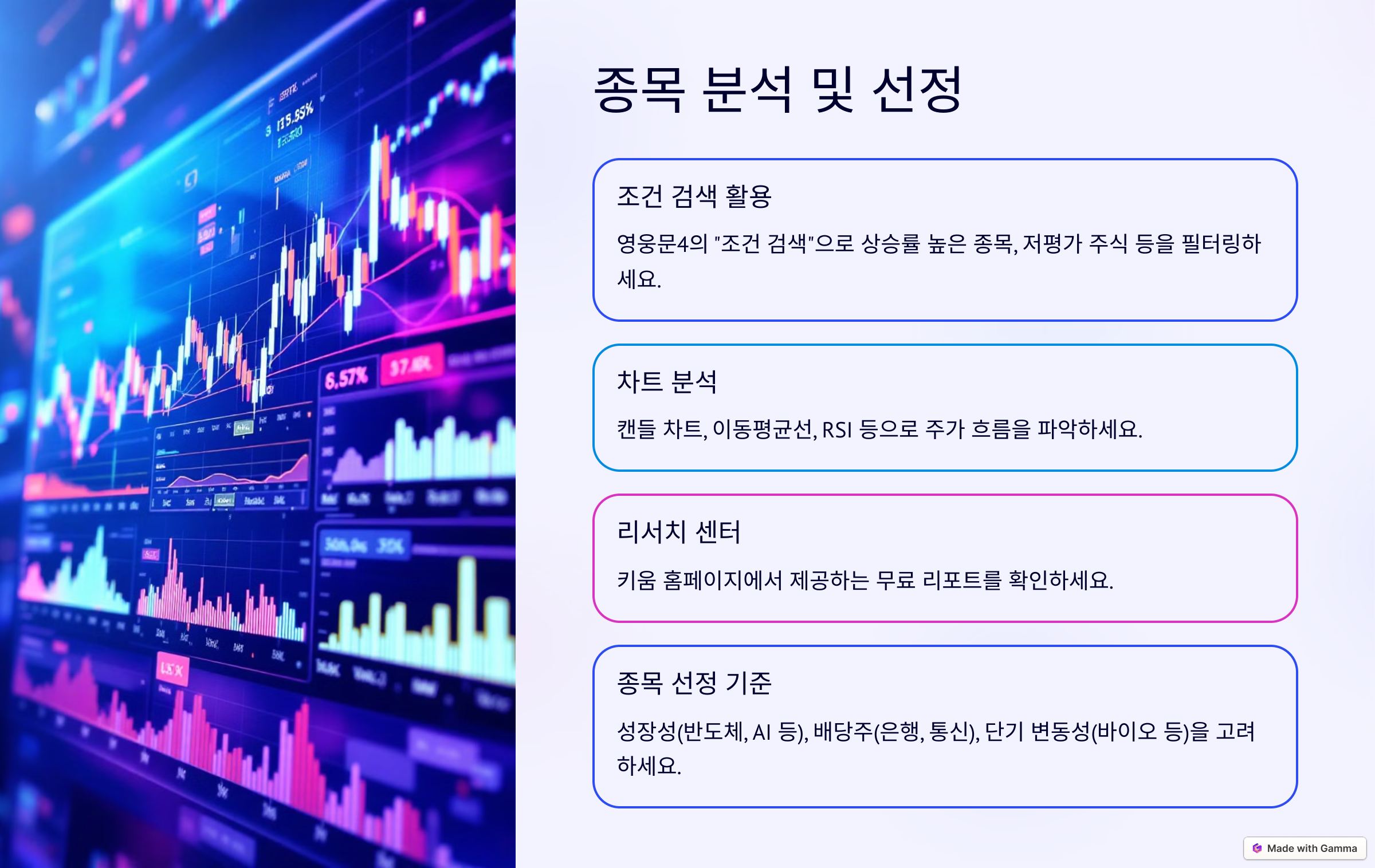 주식을 고르는 건 투자 성공의 핵심이에요. 키움증권의 도구를 활용해 분석해봅시다.
