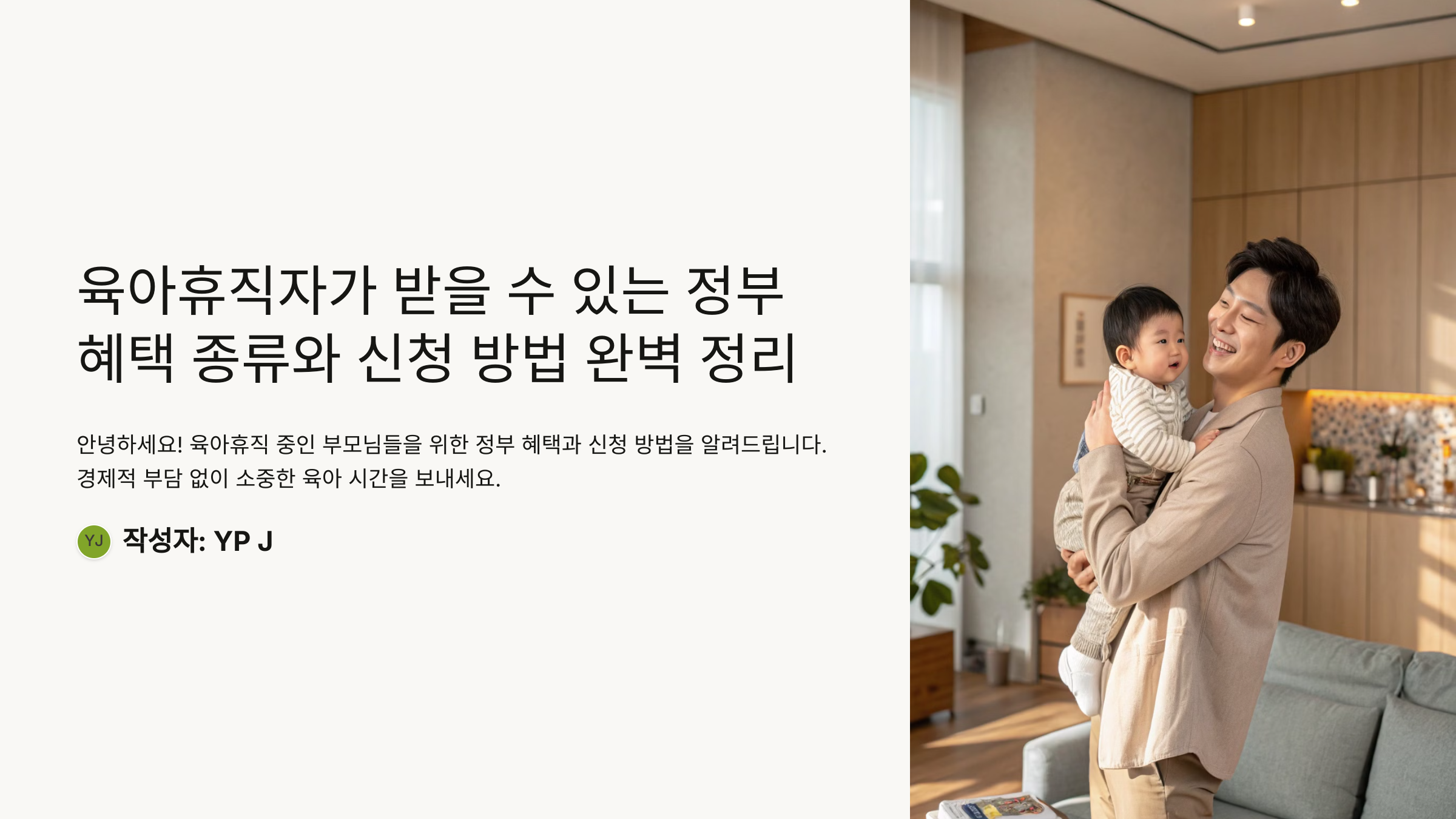 안녕하세요, 주식과 투자에 관심 많은 블로거 JYP입니다! 오늘은 아이를 키우며 육아휴직을 고민하거나 이미 휴직 중인 분들을 위해 육아휴직자가 받을 수 있는 정부 혜택과 그 신청 방법을 자세히 정리해 보겠습니다. 육아휴직은 부모에게 소중한 시간을 주지만, 경제적 부담이 걱정될 수 있죠. 다행히 정부에서 다양한 지원책을 마련해 놓았으니, 조건과 절차를 하나씩 알아보며 혜택을 놓치지 마세요!