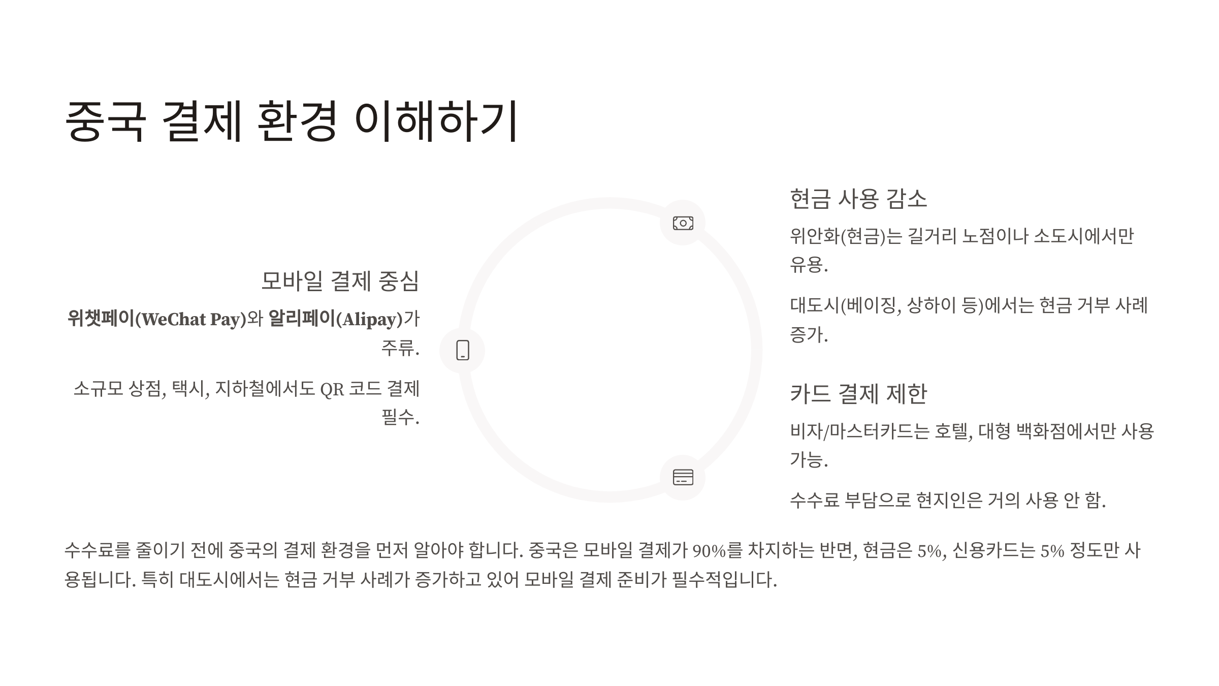 수수료를 줄이기 전에 중국의 결제 환경을 먼저 알아야 합니다.