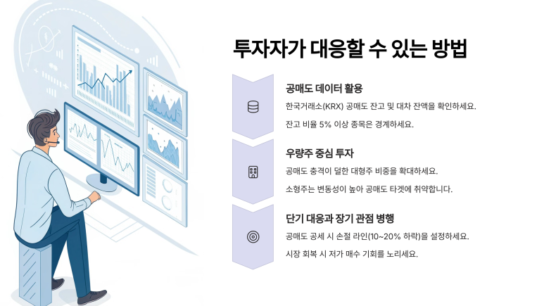 - 방법: 공매도 충격 덜한 대형주(삼성전자, LG화학 등) 비중 확대.