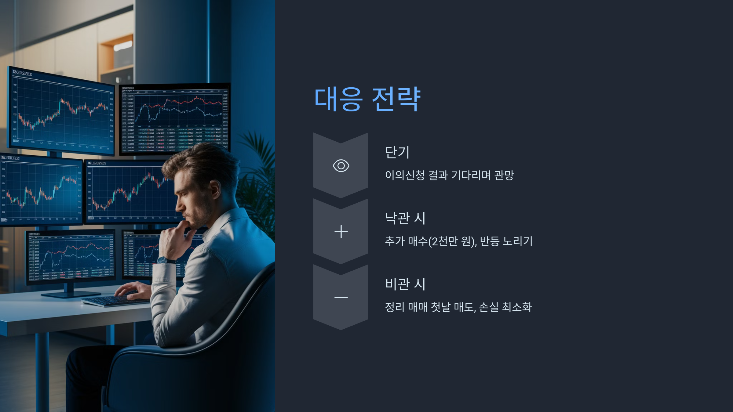 - 낙관 땐: 추가 매수(최대 2천만 원), 반등 노리기.