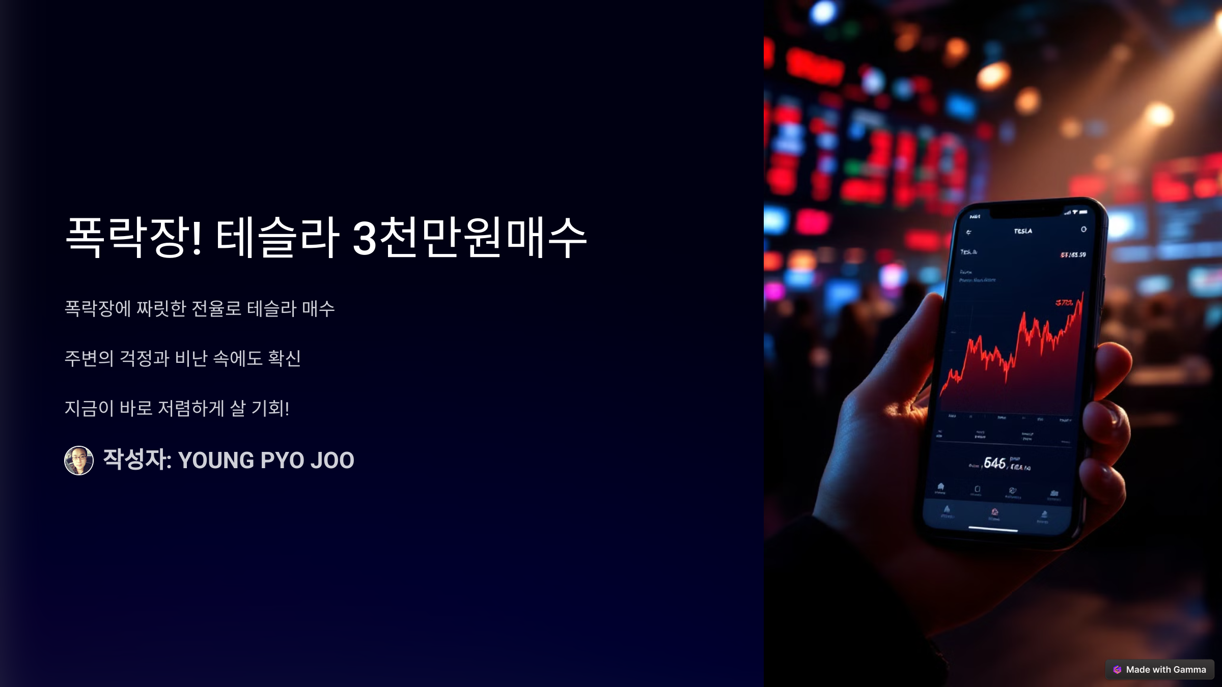 물론, 주변에서는 저를 향해 걱정과 비난의 시선을 보냈습니다. "미쳤어?", "지금 테슬라를 사다니!", "돈을 길바닥에 버리는 거랑 뭐가 달라!" 하지만 저는 확신했습니다. 지금이야말로 테슬라를 저렴하게 매수할 절호의 기회라고!